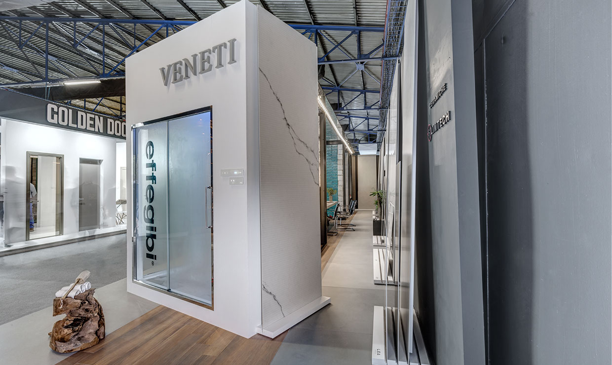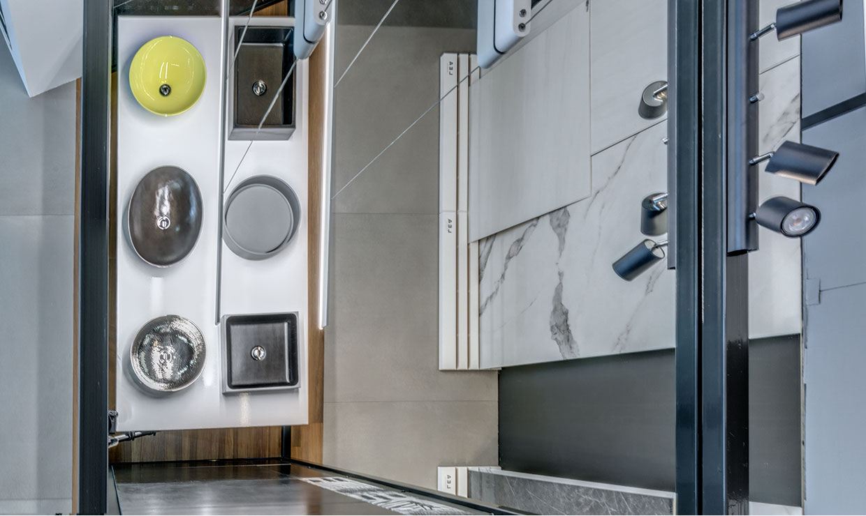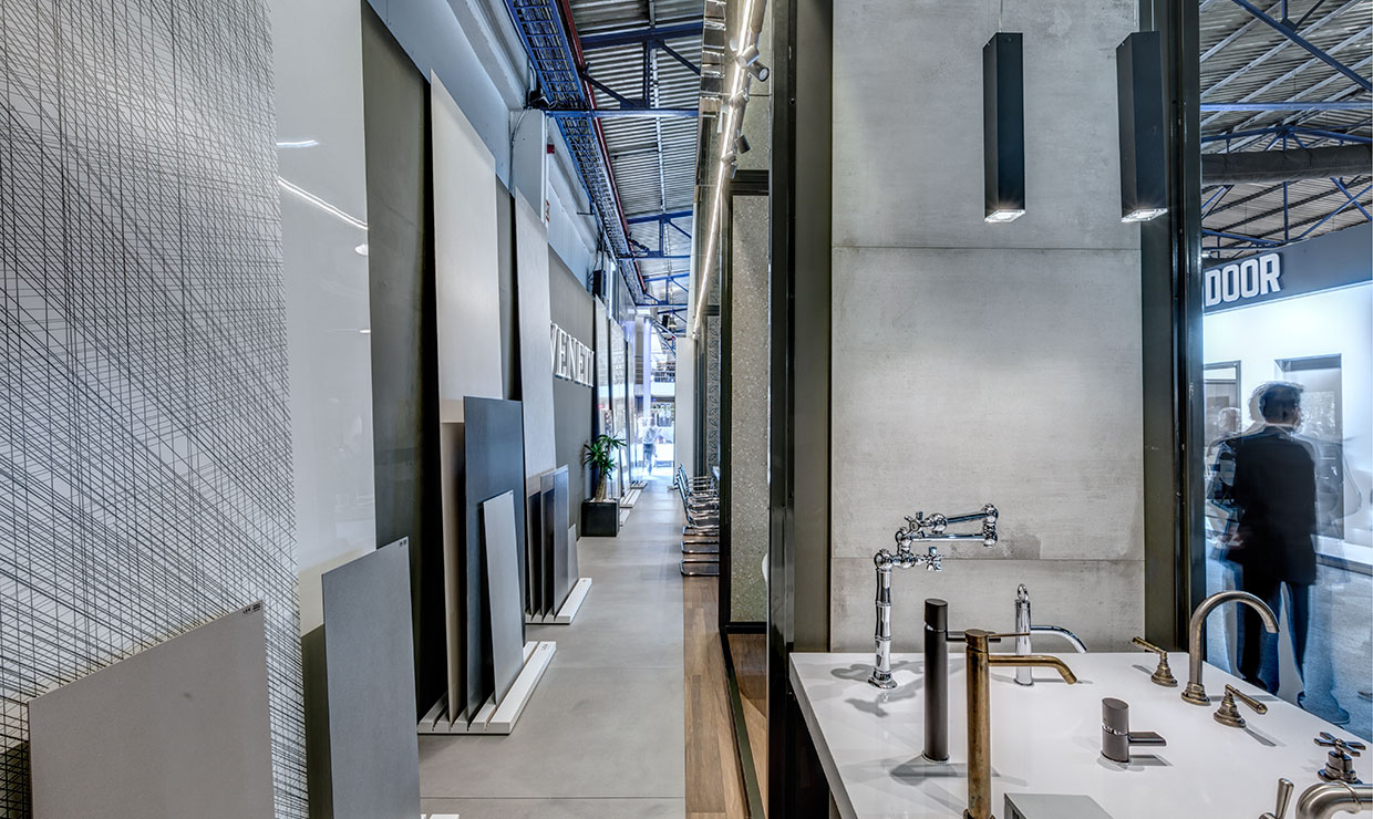 Από τα είδη υγιεινής, τα πλακίδια μέχρι την μετατροπή μιας τυπικής ντουζιέρας σε ένα Hammam. Υφές επιφανειών, αναλογίες, ματ φινιρίσματα, μπαταρίες και γούρνες συνδυάζονται παρουσιάζοντας τις τάσεις για τον ξενοδοχειακό εξοπλισμό και κατ’ επέκταση την δημιουργία μοναδικών αρχιτεκτονικών τουριστικών μονάδων. Ένας ενιαίος καθρέφτης αντικατοπτρίζει και πλαισιώνει τις επιλογές όσων επενδύουν στον τουρισμό. Μέσα από μεμονωμένες ενότητες παρουσιάζονται το δίκτυο συνεργατών της εταιρείας και η ποιοτική αναβάθμιση η οποία μπορεί να επιτευχθεί κατά την ανέγερση ή ανακαίνιση κτιριακών χώρων μέσα από τα νέα προϊόντα της. Συναρμογή υλικών, υφές σε μοναδικές επιφάνειες επένδυσης, θα προσδώσουν τον επιδιωκόμενο χαρακτήρα του χώρου. Μάρμαρο,τσιμεντοκονία, μωσαϊκό και ξύλο, αγκαλιάζουν τις ξεχωριστές μπαταρίες